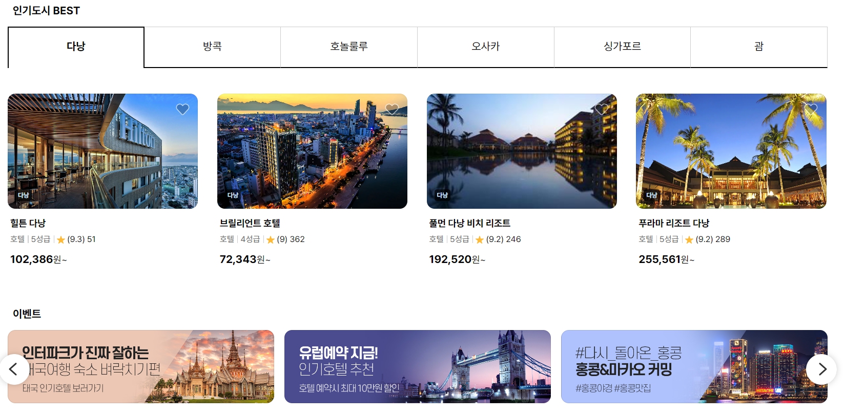 인터파크 투어 호텔은 국내호텔과 해외호텔 모두 예약이 가능합니다. 국내숙소는 호텔, 리조트, 모텔/부티크, 펜션, 풀빌라로 카테고리가 구성되어 있고 해외숙소는 얼리버드특가, 가족여행, 신상호텔, 이달의 픽 등 다양한 카테고리로 구분되어 있습니다. 숙소를 예약할 때 가장 중요한 것은 최저가 가격입니다. 숙소 예약은 예약하는 시기, 이벤트 등 다양한 요인에 의해 가격이 달라지지만 인터파크 호텔에서 최저가를 구매했다는 후기를 많이 볼 수 있습니다.