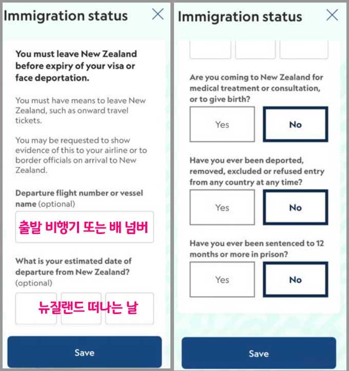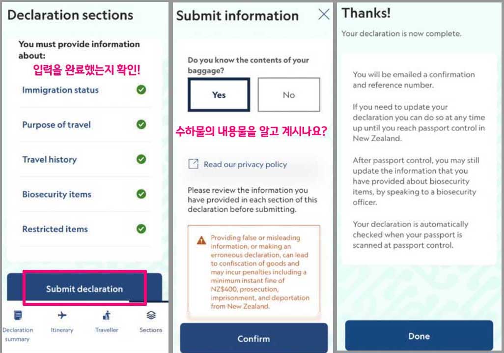 - 뉴질랜드 출발 전 24시간 이내 제출