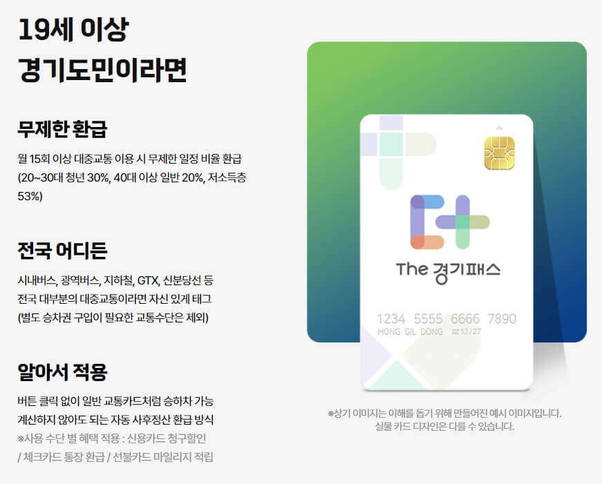 경기패스는 월 15회 이상 대중교통을 이용할 경우 일정 급액을 다음 달에 돌려받을 수 있습니다.