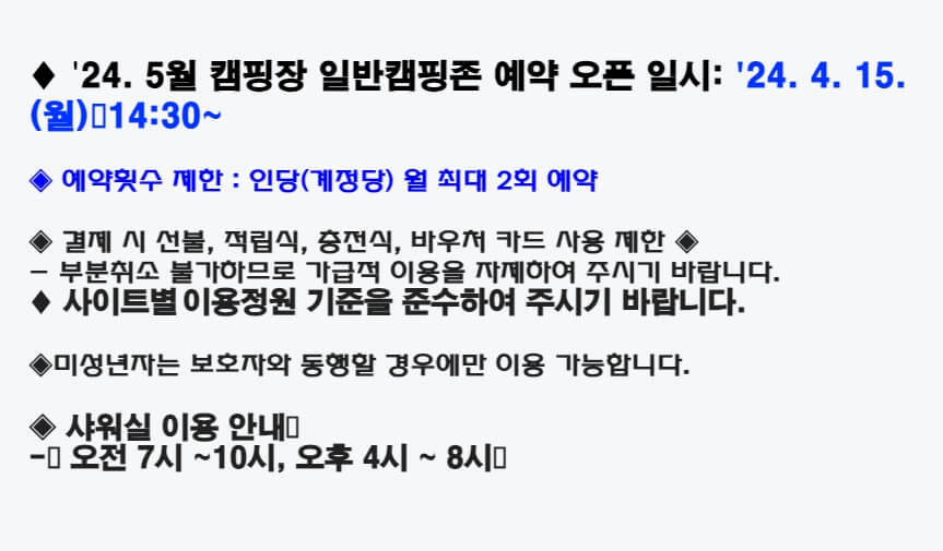 | 글램핑존 | 15시 ~ 익일 11시 |
