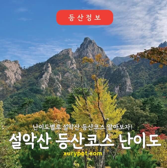 설악산은 우리나라 5번째 국립공원으로 국제적으로 가치가 있는 산입니다. 가을이 되면 많은 사람들이 단풍을 구경하기 위해 설악산을 찾고 있습니다. 높은 봉우리까지 오르기 만만치 않은 산으로 난이도에 따라 코스를 선택하시면 됩니다. 오늘은 설악산 등산코스를 난이도별로 정리해 보겠습니다.
