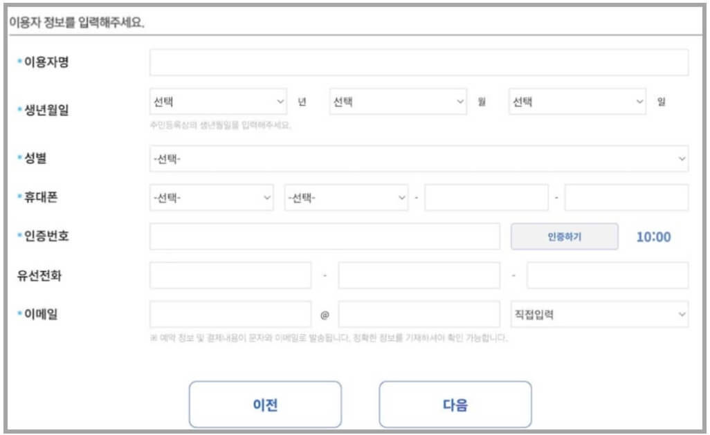 예약자 정보를 정확하게 입력합니다. 수령당일 예약자의 정보를 확인 후 기기를 받을 수 있기 때문에 정확하게 입력해야 합니다.