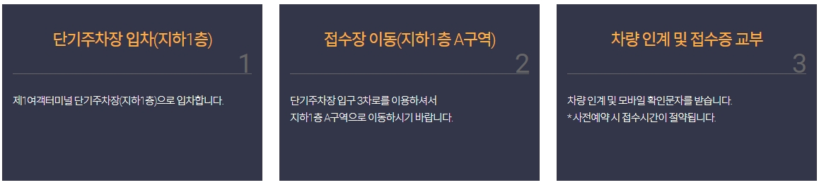 - 접수장소 : 제1여객터미널 단기주차장 지하1층 A구역