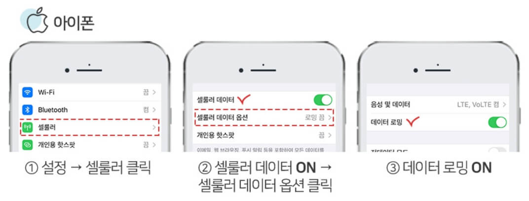 2. 셀룰러 데이터 켜기 > 셀룰러 데이터 옵션 클릭