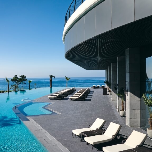 중문 바다를 한눈에 담을 수 있는 국내 최장 인피니티 야외풀입니다. 따뜻한 자쿠지가 있어서 쌀쌀한 저녁에 수영하기 좋습니다. 썬베드, 카다나, 풀사이드 다이닝이 준비되어 있는데 썬베드는 경쟁이 치열합니다. 카다나는 유료입니다.