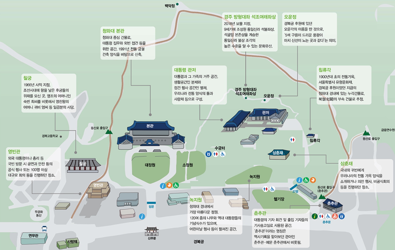 작년 5월부터 청와대를 개방하고 일 년이 지났습니다. 청와대를 개방했을 당시 예약하기 힘들 정도로 사람들이 몰렸지만 현재는 여유롭게 청와대를 관람할 수 있습니다. 청와대와 녹지원, 상춘재까지 관람을 할 수 있으며 주변 명소까지 둘러보시면 좋습니다. 오늘은 청와대 관람 신청방법과 이용시간, 주차까지 알려드리겠습니다.