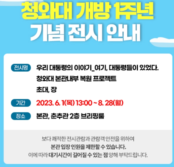청와대 관람을 하시면 청와대 개방 1주년 기념 전시를 보실 수 있습니다. 기간이 정해져 있으니 함께 관람해 보세요
